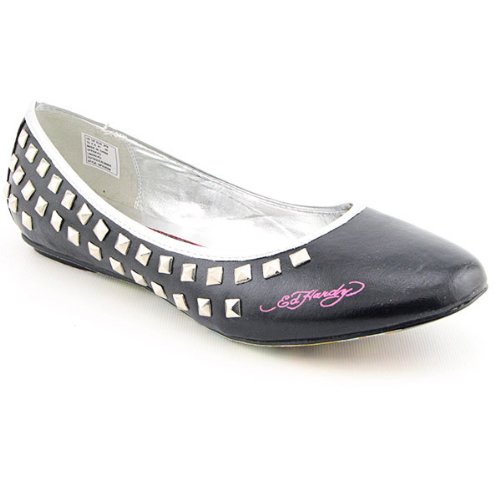 Go your own way when you roll the dice in these '80s inspired Ed Hardy Sin City skimmers. Leather upper in a slip-on casual ballet flat style with a round toe. Screen-printed colorful Ed Hardy tattoo designs add signature detail, faceted square metal stud embellishments create a rock-star glam finish. Smooth lining and cushioning insole, flexible midsole. Smooth outsole with signature Ed Hardy tattoo designs. 1/4 inch heel.Ed Hardy Sin City Womens Black Flat Shoes